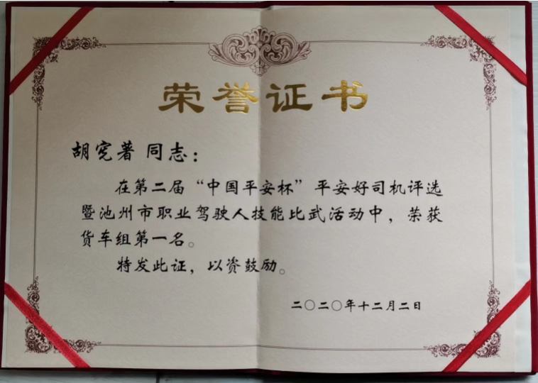 在德上高速池祁段桥、池黄高铁隧道桥梁建设现场,都能看到胡宪著的身影。近年来,他在工程运输中累计运送爆破器材4000余趟次。由于驾驶技术过硬,胡宪著曾荣获池州市职业驾驶人技能比武货车组第一名。